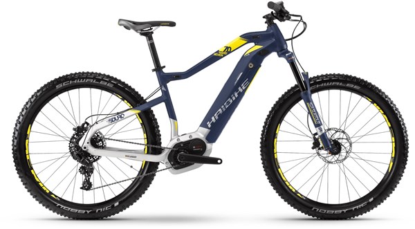 The HardSeven comes with agile 27.5" wheels available in wide or comfortable plus widths, for trips on gentle terrain. You also have the choice between a high end lightweight carbon frame or a range of different drivetrain options in our aluminium bikes.The Haibike SkidPlate:Especially eMTBs often suffer from impacts or stone chipping which damage the low-situated motor severly. Therefore, we were the first manufacturer to introduce the SkidPlate back in 2012, a protection element which protects the bottom side of the motor.Bottom side protectionHere the concept of a 'sacrifice part' applies: Similar to a helmet, the SkidPlate absorbs impact forces by deformation or destruction which would otherwise damage the significantly more expensive motor.Plastic as ideal raw materialThis is why we also use a special, shock-resistant plastic. This material conducts the incoming forces very well but stays dimensionally stable even under severe deformation at the same time compared to other materials which do not switch back to their original shape after deformation. The production in the corresponding colour perfectly hide scratches and smaller damage. If required, the SkidPlate can simply and cheaply be exchanged.The Haibike IntegratedMotor concept:The motor is the technological heart and optically the basic feature of an eBike. Thanks to the GravityCasting Interface, we are able to slightly remodel the motor and as a result, get rid of the mounting plates. Thus, we reduce the construction space to a minimum and the optical volume to a fraction of its original size.The SkidPlate is useable, not only from a technological perspective, it optically also surrounds the motor. Visually, this results in a better frame integration. This is the basis for a perfectly fitting motor which does not appear like a foreign component like in its standard version, but rather becomes the natural center of the ePerformance bikes.The Haibike Intube Battery Concept (IBC):The new Bosch PowerTube battery enables a high integration, a beautiful shape and functionality. It is available in many of our models.The Modular Rail System (MRS):Our patent MRS allows the quick and simple mounting of different equipment on the bike.A mounting rail is integrated in the upper part of the downtube. You can thus mount for instance bottle cages or bags freely on the bike. Hence, you have all items you need during a ride close at hand. We use a magnetic mounting system provided by FidLock which offers safe hold, easy handling and due to its minimalistic design, you can also use it in very small-framed bikes.Perfect for long tours:It only takes a few steps to mount an additional battery (TheRangeExtender) and thus you can reach a significantly higher distance.The Haibike Gravity Casting interface:It is the heart of the frame: the motor interface. Here, many crucial functions such as motor mount, rocker and damper mount, as well as the interlocking battery and lower connection. A robust frame is based on a sturdy interface.Casting technique known from the motorcycle industryTherefore, since 2010, we use a casting technique which is known from the motorcycle industry, the so-called Gravity-Casting technique. In this process, negative forms made of compressed sand are placed in big forms. These sand froms are then filled with an alloy of alu and zinc and afterwards rotate in precisely calculated axes. Due to gravity, the alloy spreads evenly and results in an even casting thickness.Light, robust and preciseThanks to this procedure, extremely robust components can be produced which are then exposed to an extensive X-ray control in order to achieve the casting seal of approval. A subsequent, computer-controlled postprocessing ensures stable precision.Bosch Performance CX Drive Unit:The Bosch Performance CX has been specially optimized for sporty use. The motor delivers a constant maximum torque of up to 75 Nm up even to a high speed range.The motor offers an impressive maximum torque of 75 Nm. The “Direct Flow” technique also guarantees powerful support in the lower cadence levels. Trail Control offers a dynamic power management system, that allows the rider to choose the optimum support level (50-300%) for the terrain they are riding, their riding style, and the distance they are looking to cover. “Shift detection” protects your chain by cutting off the torque from the motor during shifting for smooth gear changes.Bosch Purion Display:The new compact display is a combination of remote control and display. Positioned on the left of the handlebars, the display provides key information through a small, easy to read display. Its compactness and location make it ideal for extreme ePerformance bikes whose riders seek a display that is reduced to the essentials and well-protected.All the main functions can be directly controlled: support level (Off, Eco, Tour, eMTB/Sport, Turbo), switching on and off the eBike light, walk-assist, the current speed, the day trip and the total mileage of the bike, and the range, or how far the current charge level of the battery will last in mileage. A backlight in the display makes all information easy to read even in the dark.Drive unit: Bosch Performance CX, 250W, 75Nm, 25km/h,Display: Bosch Purion,Battery: Bosch PowerPack, 500 Wh,Charger: Bosch compact charger 2A.