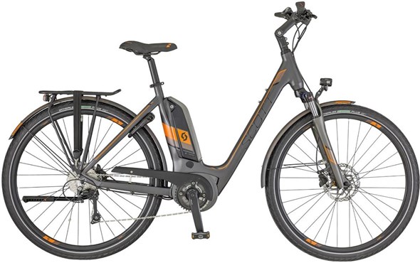 This Scott E-Sub Tour electric bike is in excellent condition. Having never been ridden, it is showing no signs of mechanical wear. However, it has some cosmetic imperfections on the drive side chain stay which has chipped paint.To ensure this bike meets our high standards for quality, it has undergone a thorough inspection by our professional mechanics. As with all our bikes, it comes with a 12 month Tredz warranty, plus any additional manufacturer warranty which may apply.The Scott E-SUB Tour makes getting around town easier. The new Unisex Geometry with wider Step Through, and ePowered by Bosch with a 500wh battery, the E-SUB Tour is the ideal commuter bike. Equipped with 50c tires, it’s ready to provide many kilometres of worry free reliability. Available in Men, Lady and Unisex geometries.Key Features:• E-SUB Alloy Frame• Suntour NEX-E25, 63mm Fork• Shimano Deore 10 Speed• Bosch Active Plus, 500Wh, Purion• Shimano Disc Brakes• Fr Axa Blue Line, Re B&M Top Light• Racktime with spring, Snapit